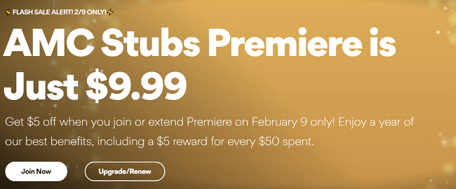 AMC Stubs Premiere 1-Year Membership Only $10 - Hip2Save As another option, for a limited time, save 50% off the AMC Stubs Premier Membership! At just $7.50/per year (regularly $15), you'll enjoy all the perks above AND free popcorn and drink upgrades, waived ticket fees, and more. Join the A-List and score even more perks & discounts! Love seeing the newest films?