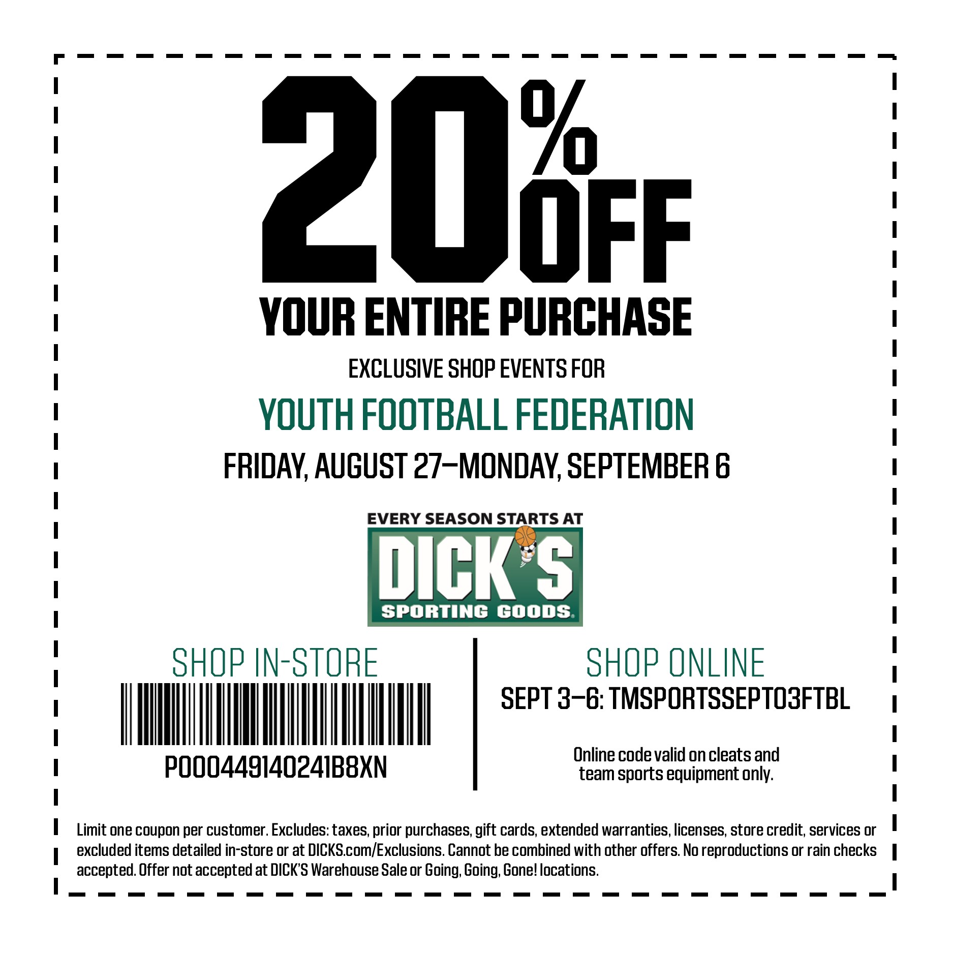 Youth Football Coupons, Promo Codes September 2022 Find out stores that offer Youth Football coupons, promo codes and deals. Today's top Youth Football coupon is '20% Off NUC Sports Digital Network Membership Packages' from Schuman's National Underclassmen. You are on the right place for Youth Football coupons & promo codes September 2022.